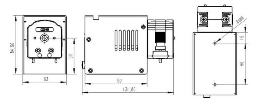 蠕動泵型号 轉速(rpm) 滾輪數(shù) 通(tōng)道(dào)數(shù) 适用(yòng)軟管 流量範圍(ml/min) S100-11B+KZ10-14 100 4 1 壁厚0.8-1mm外(wài)徑≤6.4mm 0.0035-45 S100-11B+KZ10-18 8 1 0.0025-18 S100-11B+KZ10-24 4 2 0.0035-45 S100-11B+KZ10-28 8 2 0.0025-18 S100-11B+KZ15-14 4 1 13# 14# 19# 16# 0.0035-42 S100-11B+KZ15-18 8 1 0.0028-18.9 S100-11B+KZ15-24 4 2 0.0035-42 S100-11B+KZ15-28 8 2 0.0028-18.9 S300-11B+KZ10-14 300 4 1 壁厚0.8-1mm外(wài)徑≤6.4mm 0.0035-134 S300-11B+KZ10-18 8 1 0.0025-52 S300-11B+KZ10-24 4 2 0.0035-134 S300-11B+KZ10-28 8 2 0.0025-52 S300-11B+KZ15-14 4 1 13# 14# 19# 16# 0.0035-128 S300-11B+KZ15-18 8 1 0.0028-57 S300-11B+KZ15-24 4 2 0.0035-128 S300-11B+KZ15-28 8 2 0.0028-57 外(wài)形尺寸