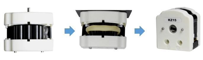 ◆2個(gè)泵頭串聯,前後泵頭滾輪相(xiàng)互錯(cuò)開(kāi)安裝,前泵頭滾輪位于後泵頭2個(gè)滾輪之間(jiān)