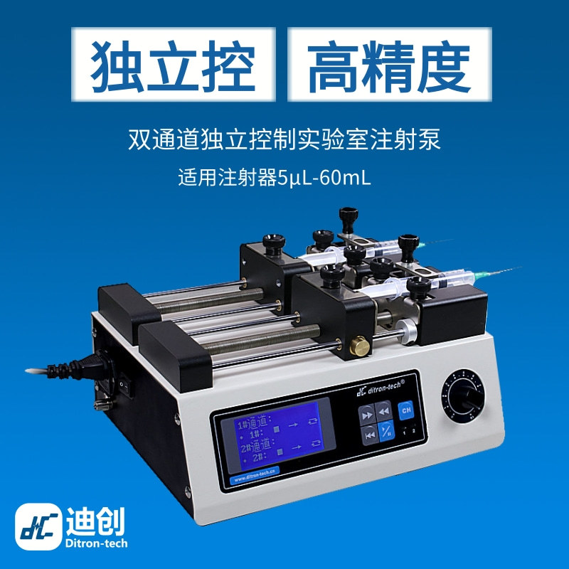 雙通(tōng)道(dào)獨立控制(zhì)灌注/抽取型微(wēi)量注射泵,雙通(tōng)道(dào©)單獨設置各項參數(shù),互不(bù)幹涉