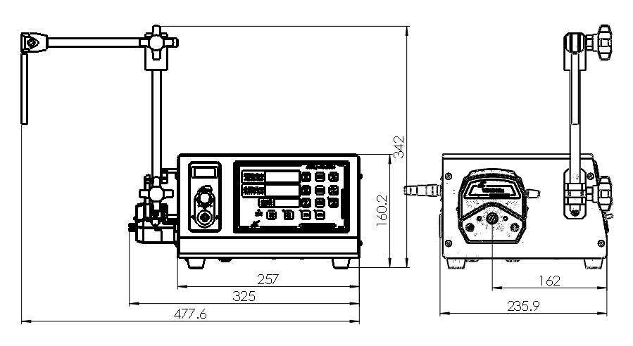 産品型号 GR1-1B plus GR2-1B plus 灌裝噴頭數(shù)量 1 2 灌裝液量設定範圍 0.1-41000mL 流量範圍 0-2500mL/min 流量調節 旋轉編碼開(kāi)關調節轉速,轉速分(fēn)辨率1rpm 轉速顯示範圍 1-600rpm 灌裝模式 手動灌裝、自(zì)動灌裝、設定灌裝三種工(gōng)作(zuò)模式可(kě)選 顯示功能(néng) 4位LED顯示灌裝運行(xíng)時(shí)間(jiān),4位LED顯示灌裝間(jiān)隔時(shí)間(jiān),5位LED顯示灌裝次數(shù) 灌裝時(shí)間(jiān)設置 設置範圍0.01秒(miǎo)-999.9秒(miǎo) 間(jiān)隔時(shí)間(jiān)設置 設置範圍0.01秒(miǎo)-999.9秒(miǎo) 灌裝次數(shù) 顯示次數(shù)59999次 灌裝次數(shù)設定 次數(shù)累計(jì)、次數(shù)預置兩種模式可(kě)選 操作(zuò)方式 薄膜按鍵操控,方便、快(kuài)捷、可(kě)靠;進口電(diàn)位器(qì)旋鈕調節流量 掉電(diàn)記憶功能(néng) 重新上(shàng)電(diàn)後,參數(shù)保持掉電(diàn)前狀态,按啓動鍵後(或觸發腳踏開(kāi)關)即可(kě)掉電(©diàn)前參數(shù)繼續運行(xíng) 腳踏開(kāi)關控制(zhì) 标配腳踏開(kāi)關控制(zhì)啓停 灌裝支架 标配灌裝支架,可(kě)進行(xíng)高(gāo)度、長(cháng)度方向調整 灌裝噴頭 304不(bù)鏽鋼噴頭,标配6mm內(nèi)徑噴頭,3mm、4mm可(kě)選 功率消耗 <80W 适用(yòng)電(diàn)源 寬泛電(diàn)壓AC90-260V,50Hz/60Hz 工(gōng)作(zuò)環境 0-40℃,濕度<80%不(bù)結露 外(wài)形尺寸 325mm×240mm×165mm(不(bù)含灌裝支架) 重量 4.5KG 5.6KG 防護等級 IP31 外(wài)形尺寸