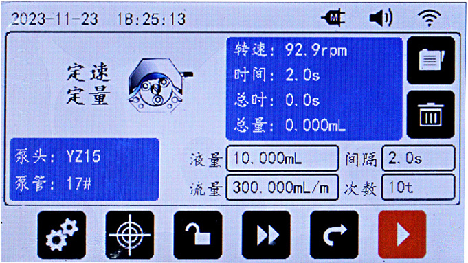 适合≤1000mL/min高(gāo)精度液體(tǐ)傳輸,以及0.01-50mL液體(tǐ)灌裝;流量模式、定時(shí)定速、定速定量、定時(shí)定量4種工(gōn✘g)作(zuò)模式;工(gōng)業(yè)觸摸屏