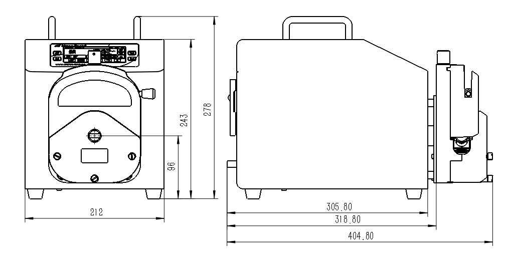 驅動器(qì)型号 CL600G 适用(yòng)泵頭 1或2個(gè)YZ35泵頭 流量範圍 2.5-12000mL/min 轉速範圍 0.2-600rpm 工(gōng)作(zuò)模式 流量模式、定時(shí)定速 液量累計(jì) 總液量累計(jì)與清零功能(néng) 時(shí)間(jiān)累計(jì) 運行(xíng)總時(shí)間(jiān)累計(jì)與清零功能(néng) 方案存儲 保存當前運行(xíng)方案,方便調用(yòng) 流量校(xiào)準 輸入實測流量,自(zì)動校(xiào)準,實現(xiàn)更高(gāo)精度液體(tǐ)傳輸 回吸速度設置 設置回吸速度,防止停機(jī)後滴液,速度範圍10-300rpm 回吸角度設置 設置回吸角度,防止停機(jī)後滴液,角度範圍10-720°,可(kě)設置為(wèi)0 鎖屏功能(néng) 鎖屏,防止誤碰或随意更改參數(shù) 全速功能(néng) 液體(tǐ)快(kuài)速填充與排空(kōng)軟管 方向控制(zhì) 液體(tǐ)傳輸方向控制(zhì) 預約啓動 設定日(rì)期時(shí)間(jiān),預約啓動 定時(shí)啓動 按設定時(shí)間(jiān),定時(shí)啓動 語言設置 中英文(wén)界面切換 恢複出廠(chǎng)設置 恢複出廠(chǎng)設置功能(néng) 轉速控制(zhì)精度誤差 ≤0.2% 外(wài)部信号輸入 0-5V、0-10V、4-20mA、0-10KHz外(wài)部信号調速功能(néng)(僅用(yòng)于流量模式) 啓停控制(zhì) 外(wài)部信号啓停控制(zhì),開(kāi)關量及電(diàn)壓方式可(kě)選 腳踏開(kāi)關 選配腳踏開(kāi)關控制(zhì)啓停 通(tōng)信功能(néng) 采用(yòng)Modbus RTU通(tōng)信規約 運行(xíng)時(shí)間(jiān) 0.1s-9999.9Hr 間(jiān)隔時(shí)間(jiān) 0.1s-9999.9Hr 操作(zuò)方式 4.3吋工(gōng)業(yè)觸摸屏結合薄膜按鍵 運行(xíng)次數(shù) 0-99999次(0為(wèi)無限循環) 工(gōng)作(zuò)環境 溫度0-40℃,相(xiàng)對(duì)濕度<80% 适用(yòng)電(diàn)源 AC90-260V,50/60Hz 驅動器(qì)尺寸 319*212*278mm 重量 8kg 防護等級 IP31 外(wài)部信号控制(zhì)